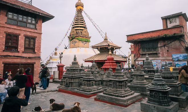 Meet your guide in the afternoon and set out for a short but rich walking tour. Visit the sacred Swayambhunath Stupa, one of the oldest religious sites in Nepal with stunning views over the valley. Wander through Kathmandu Durbar Square before strolling into the buzzing alleys of Asan Bazaar and Thamel. In the evening, meet your group for a welcome dinner and trek briefing.